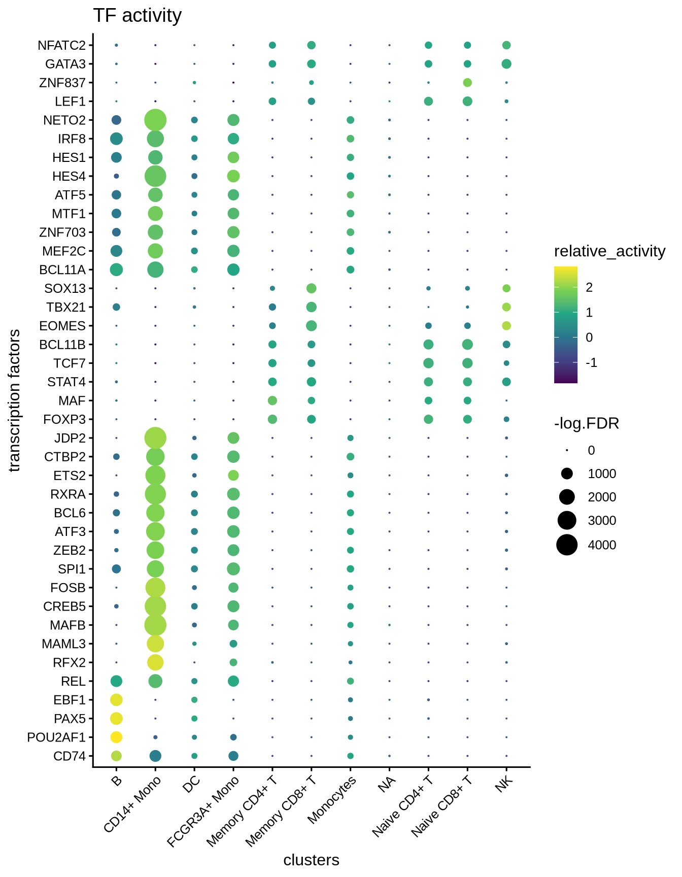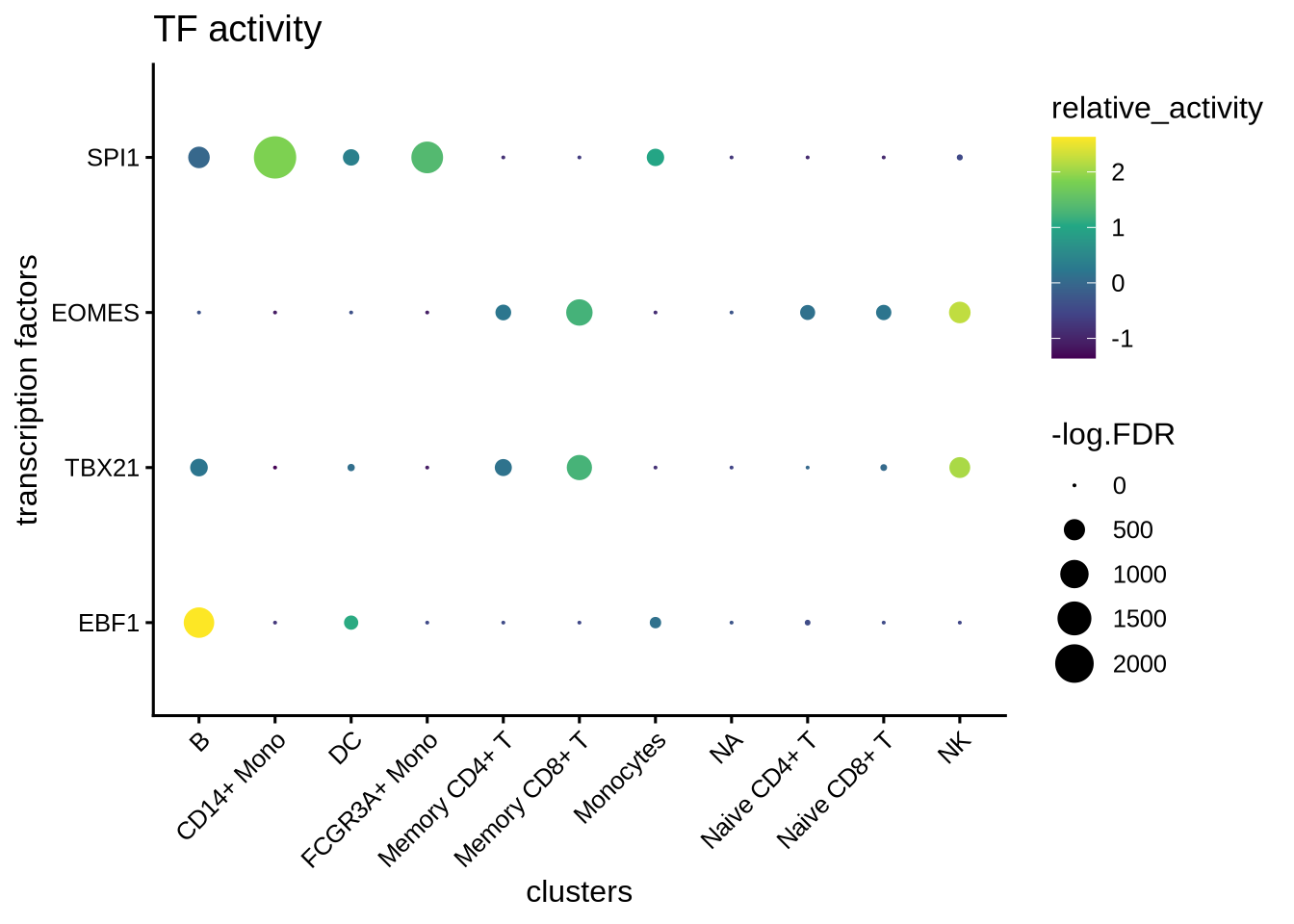 We can visualize the different TFs in a bubble plot: