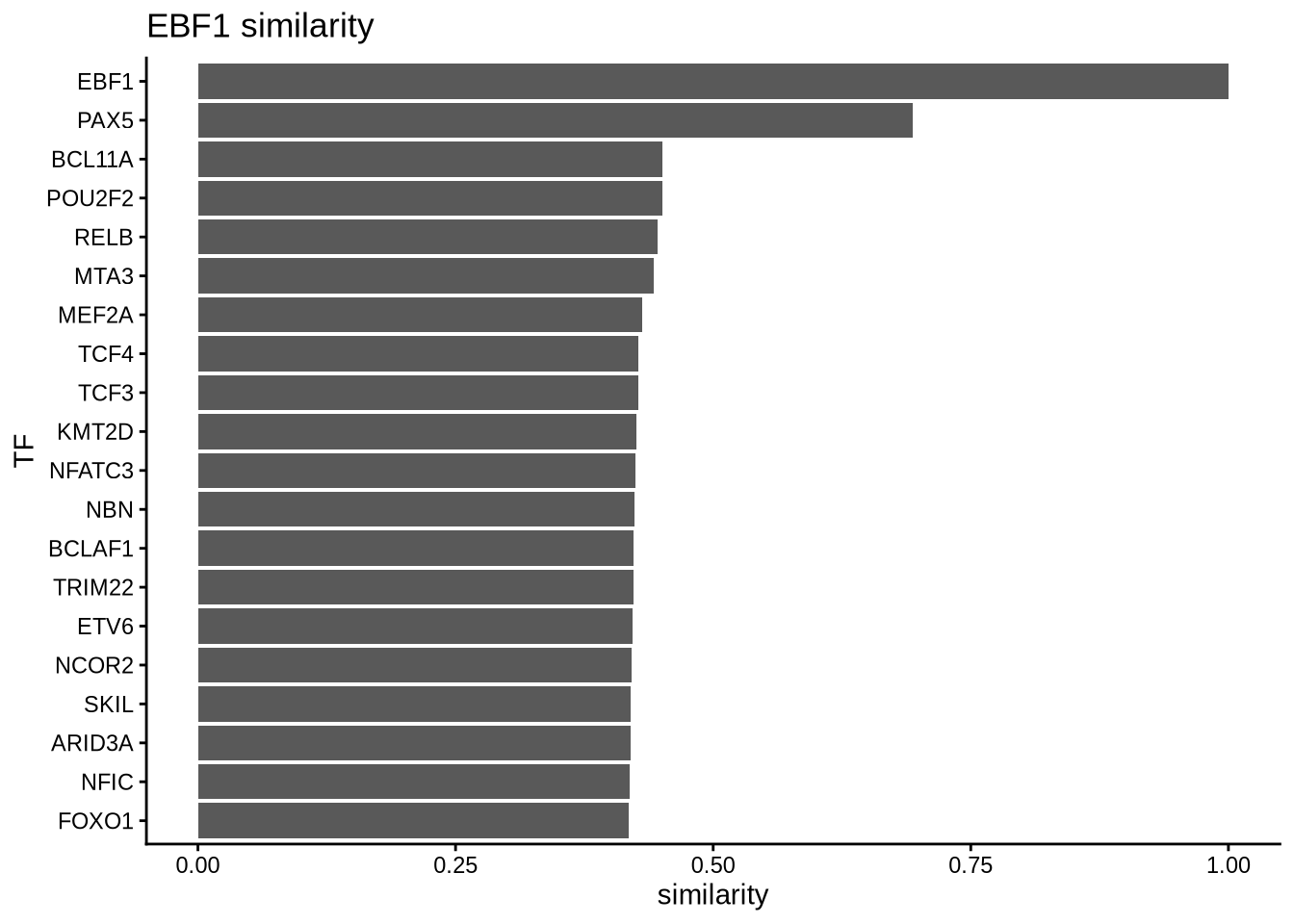 # plot top TFs most similar to EBF1